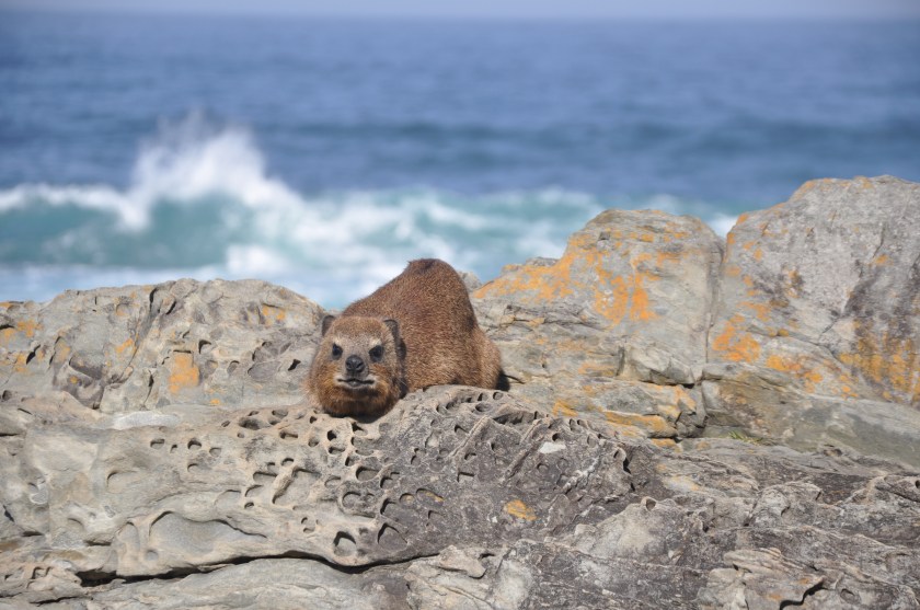 Marmot on rocks at ocean
