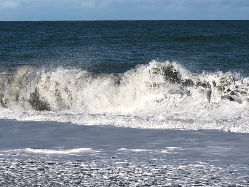 Waves crashing sand, rocks 3, Western NZ