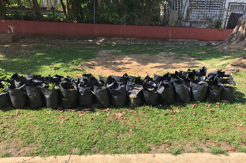 School trash bags w seedlings, Minillas, Puerto Rico
