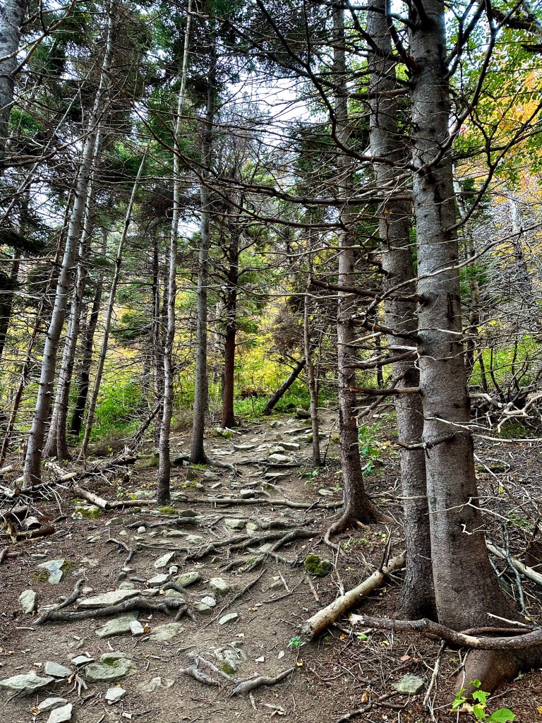 The rocky trail wound and zagged, rose and dipped, ubiquitous roots crisscrossed underneath as scratchy limbs drew swords above. Staccato gait, steady stumbles, steady breath, steady climb. The summit beckons beyond.