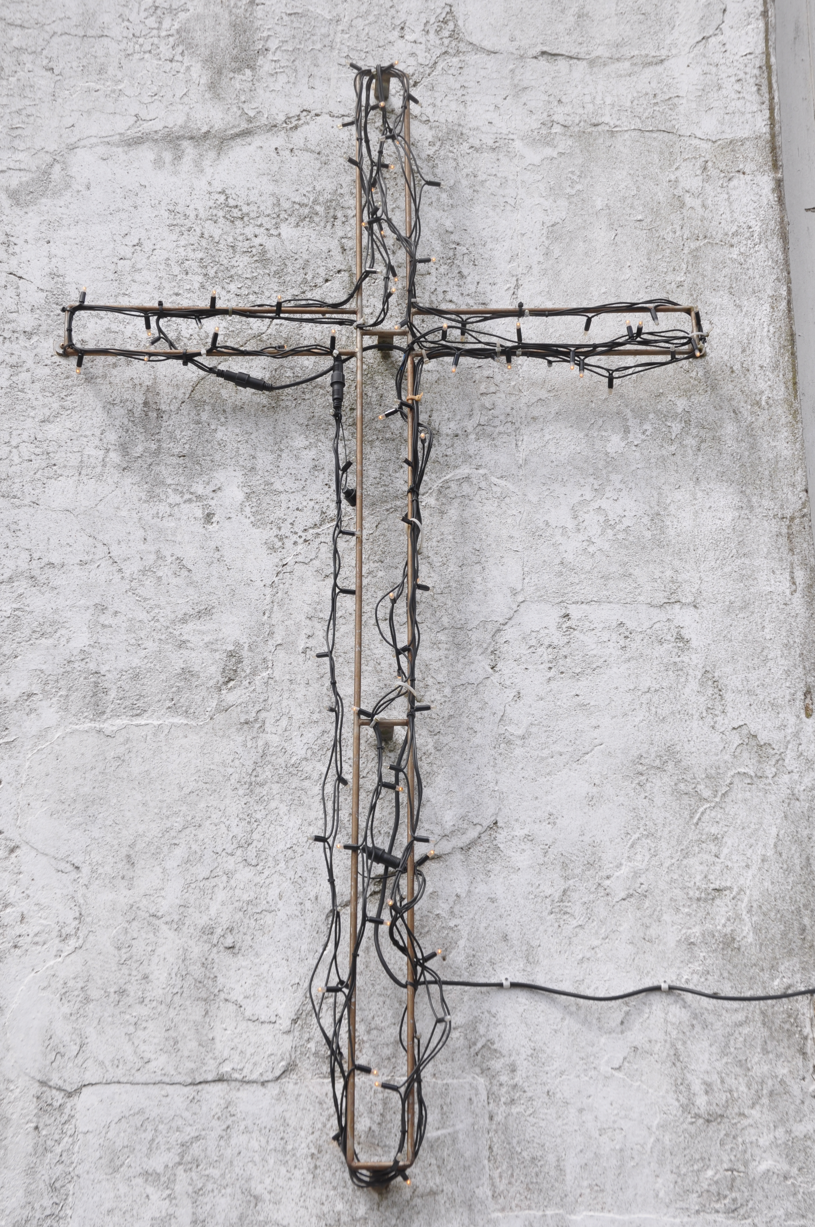 Cornwall, England, wired cross on church