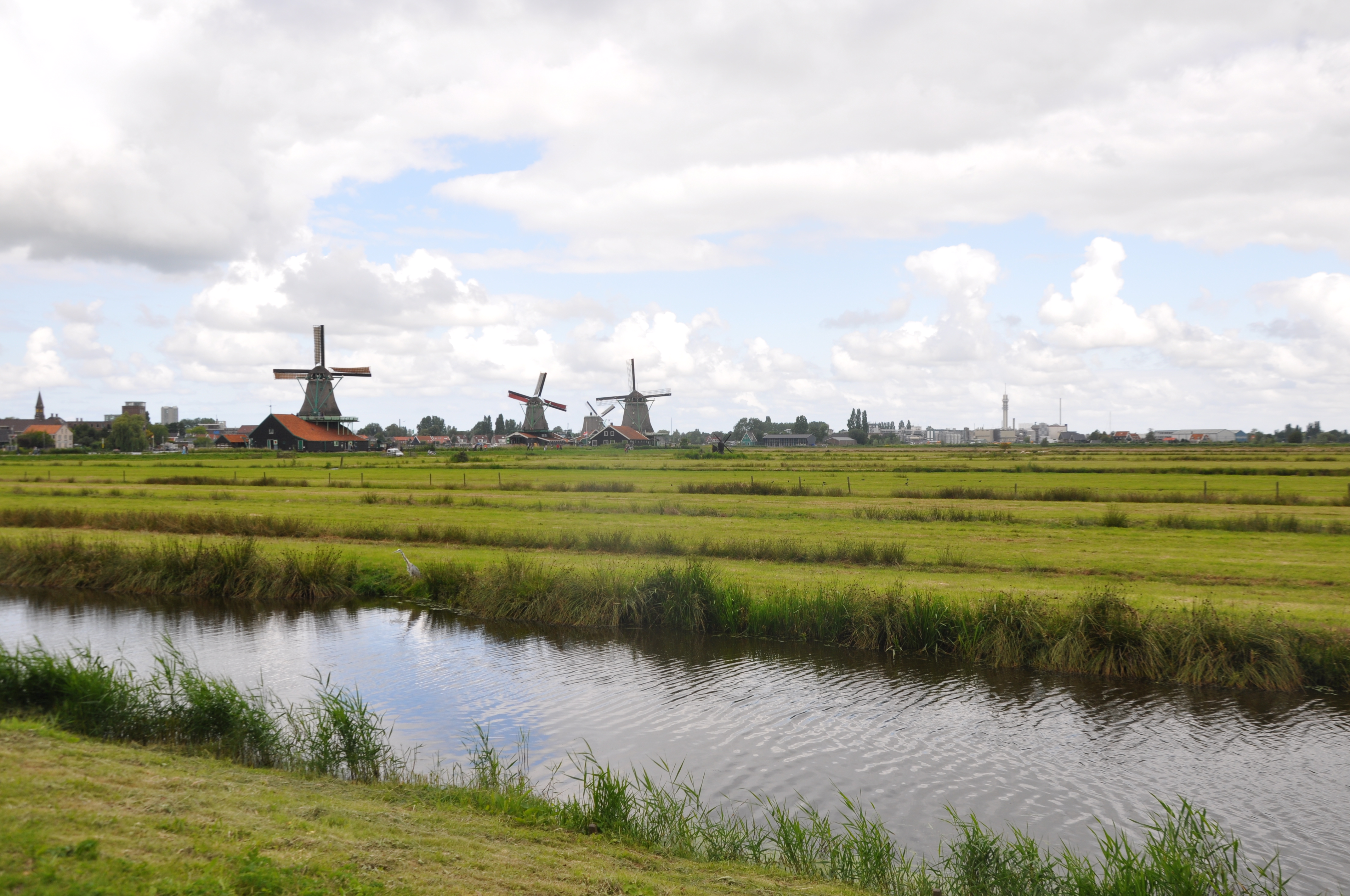 Holland windmills, sky reflected in water