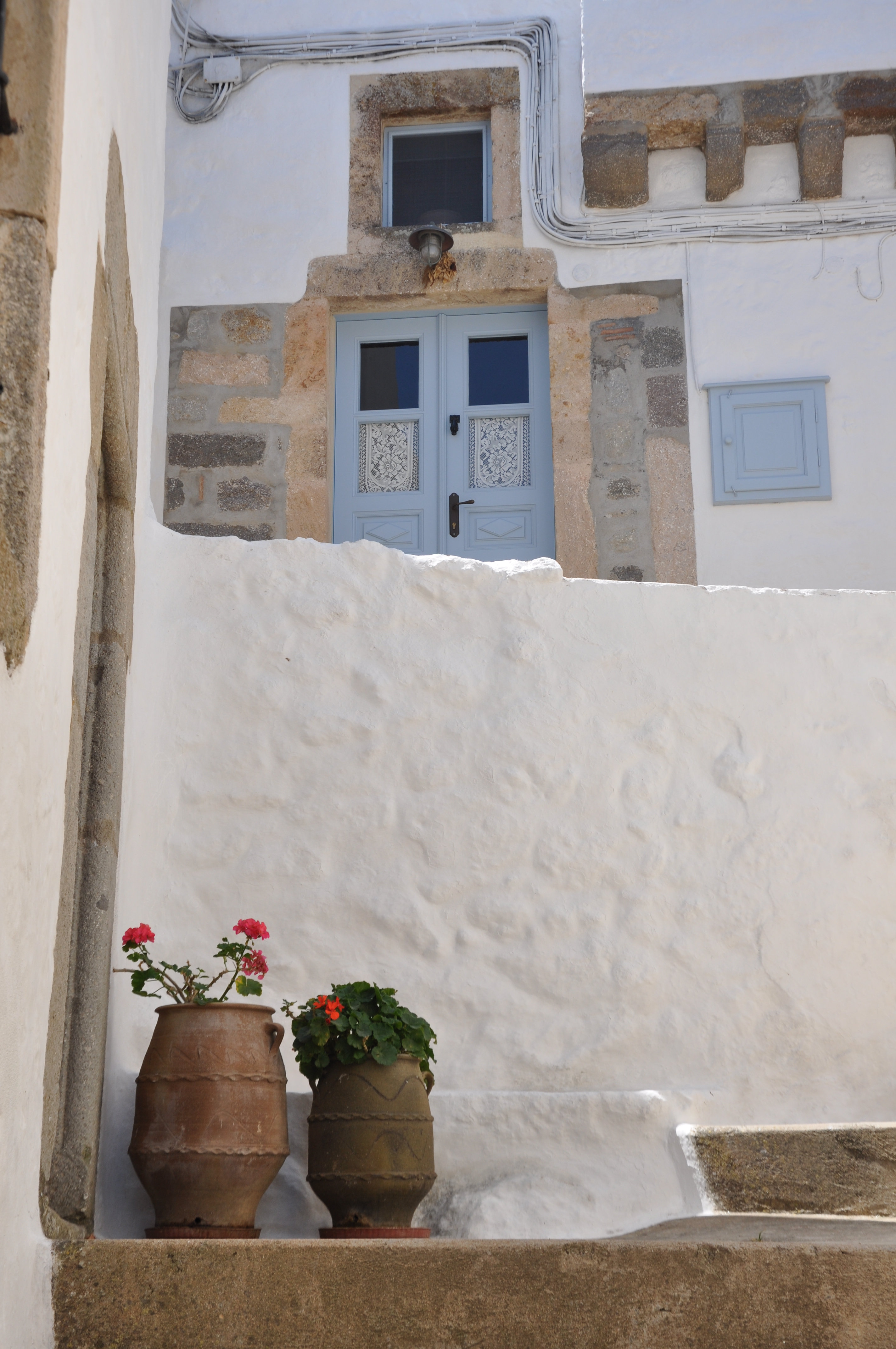 Patmos, pots, door, wall