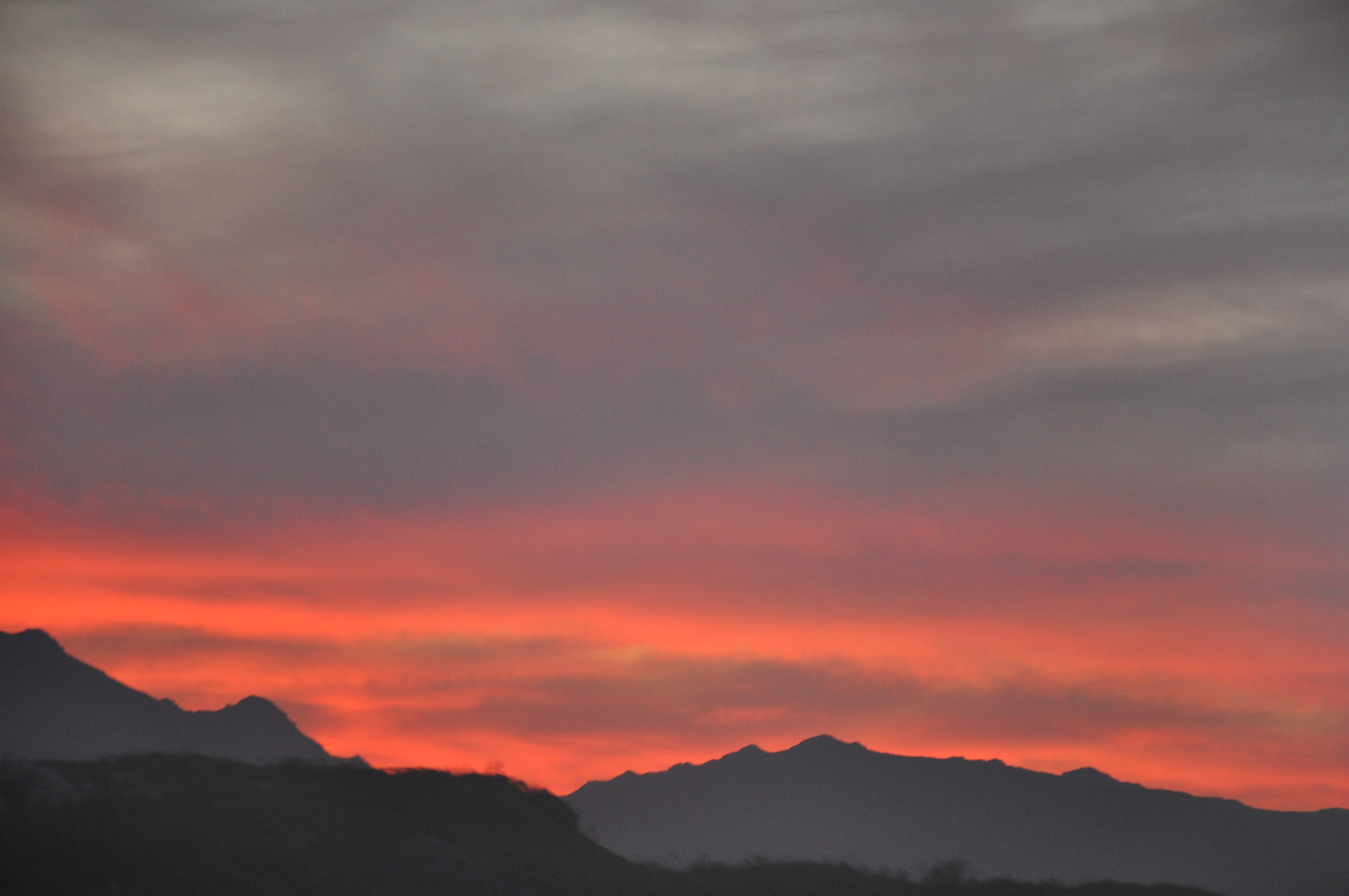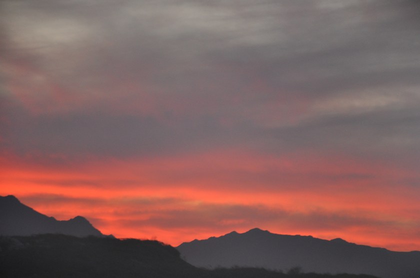 Red sunset over mountains