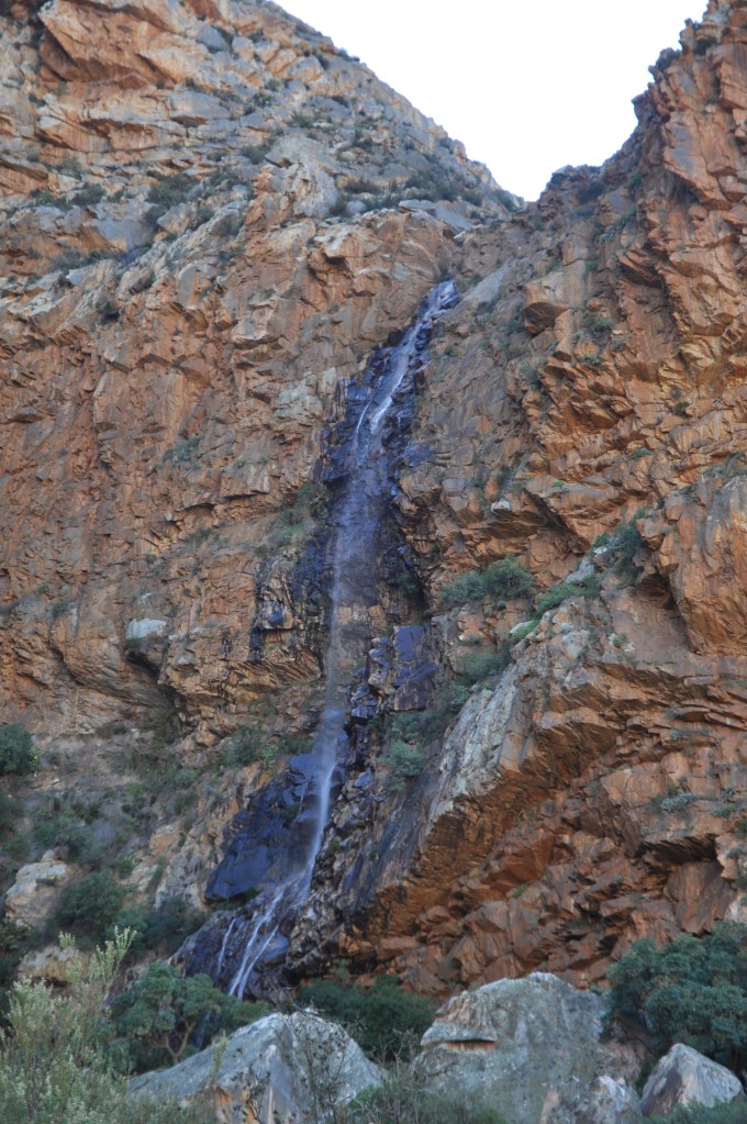 S Africa, waterfall through red rock